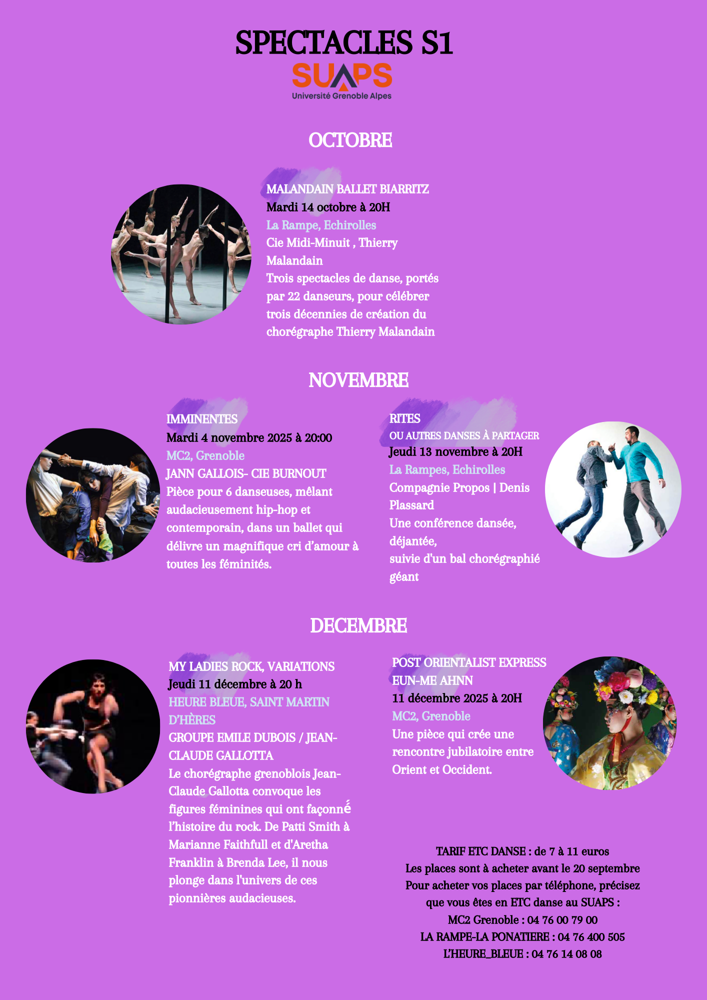 Frais Pédagogiques : gratuit mais prévoir l’achat d’une place de spectacle de danse professionnelle